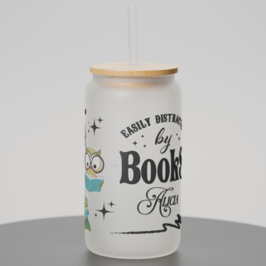 Easily Distracted by Books - Personalized Glass Cup 16oz